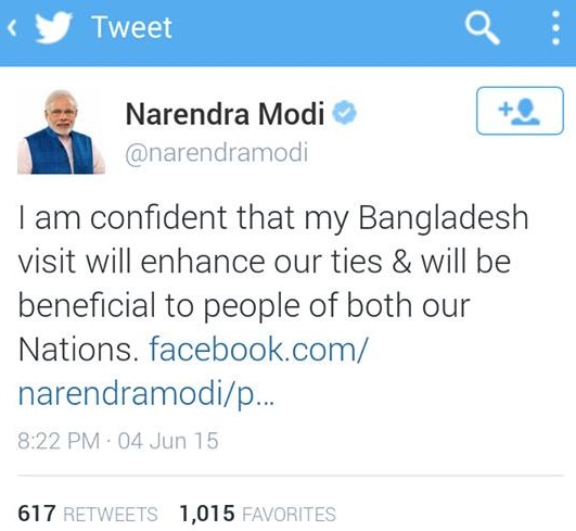 বাংলাদেশ সফরে দুই দেশের জনগন উপকৃত হবে: টুইটার বার্তায় মোদি