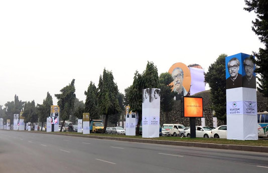সিলেটটুডে ডেস্ক : জাতির জনক বঙ্গবন্ধু শেখ মুজিবুর রহমানের জন্ম শতবর্ষ উদযাপনের অংশ হিসেবে বাংলাদেশ আওয়ামী লীগের উদ্যোগে রাজধানীকে সাজানো হয়েছে বর্ণিল সাজে।