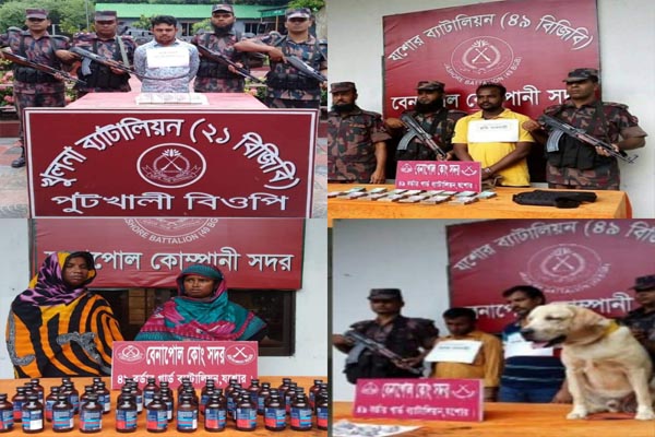 বেনাপোল প্রতিনিধি : যশোরের বেনাপোল সীমান্ত থেকে পৃথক অভিযান চালিয়ে ৫০ বোতল ফেন্সিডিল, ৯০ গ্রাম গাঁজা ও ৯ লাখ ৭৫ হাজার হুন্ডির টাকাসহ ৫ জনকে আটক করেছে বর্ডার গার্ড বাংলাদেশ (বিজিবি) সদস্যরা।