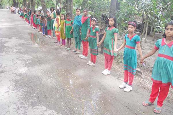ঝিনাইদহ প্রতিনিধি : ঝিনাইদহে ২৫ কিলোমিটার মহাসড়ক জুড়ে শতাধিক শিক্ষা প্রতিষ্ঠানের শিক্ষক-শিক্ষার্থীরা জঙ্গিবাদ বিরোধী মানববন্ধন কর্মসূচী পালন করেছে। তাদের সাথে যোগ দেন, সামাজিক নেতৃবৃন্দ, অভিভাবক ও সুধীবৃন্দ।