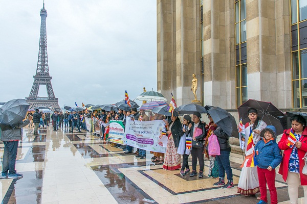 মঙ্গলবার (২২ মে) দুপুরে ফ্রান্সের প্যারিসের আইফেল টাওয়ারের পদতলে বৈরি আবহাওয়া উপেক্ষা করে বিভিন্ন সংগঠনের ব্যানারে জড়িত হন শদুয়েক বাংলাদেশী বৌদ্ধ সম্প্রদায়ের নারী-পুরুষ।