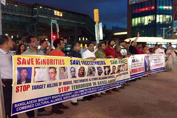 সংখ্যালঘু সম্প্রদায়ের নেতা ও কলামিস্ট সীতাংশু গুহ ষোষণা দেন, বাংলাদেশের সাম্প্রতিক হত্যাকান্ডের প্রতিবাদে জাতিসংঘের সামনে আগামী ২৬ জুন রোববার নিউইর্য়কের জাতিসংঘ সদর দপ্তরের সামনে বিক্ষোভ সমাবেশ অনুষ্ঠিত হবে।