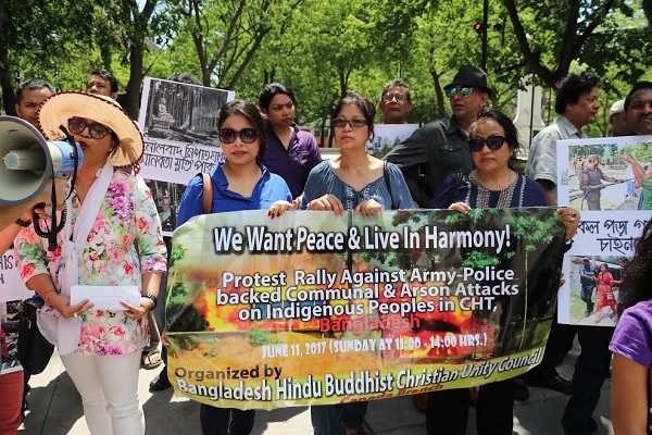 বাংলাদেশ হিন্দু বৌদ্ধ খ্রিষ্টান ঐক্য পরিষদ কানাডা শাখার আহ্বানে রোববার (১১ জুন) সকাল ১১টায় মন্ট্রিয়েল শহরের এটওয়াটার চত্বরে এই বিক্ষোভ সমাবেশ ও মানববন্ধন অনুষ্ঠিত হয়।
