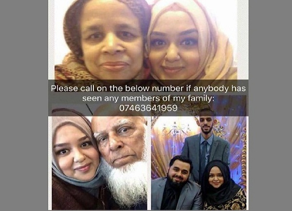 লন্ডনে গ্রীন ফিল টাওয়ারে অগ্নিকাণ্ডের পর সেখানকার এক বাংলাদেশি পরিবার নিখোঁজ রয়েছে বলে জানা গেছে। অগ্নিকাণ্ড সংঘটিত হওয়া গ্রিন ফীল টাওয়ারের একটি ফ্ল্যাটে বাংলাদেশি কমরু মিয়া (৯০), তার স্ত্রী, দুই ছেলে ও এক মেয়ে রয়েছেন।