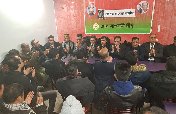 ফ্রান্স আওয়ামী লীগের সভাপতি এম এ কাশেমের সভাপতিত্বে ও সাধারণ সম্পাদক মুজিবুর রহমান মুজিবের পরিচালনায় অনুষ্ঠিত শোকসভায় এ সময় বক্তব্য রাখেন,ফ্রান্স আওয়ামীলীগের সাবেক সভাপতি মুক্তিযোদ্ধা বেনজির আহমেদ সেলিম, সিনিয়র সহ-সভাপতি মোহাম্মদ আবুল কাশেম, রাজনৈতিক উপদেষ্টা পরিষদের চেয়ারম্যান ওয়াহিদ বার তাহের, সামাজিক উপদেষ্টা পরিষদের চেয়ারম্যান মিজান চৌধুরী মিন্টু, উপদেষ্টা আব্দুল হান্নান, সহ-সভাপতি সোহরাব মৃধা, সাহেদ আলী, সৈয়দ ফয়সল ইকবাল হাসেমী, সাহেদ আলী, গোলাম মোরশেদ পাটোয়ারী, হাজী জহিরুল হক, এমদাদুল হক স্বপন, ফয়সল উদ্দিন, নিয়াজ উদ্দীন চৌধুরী হীরা, সৈয়দ রেজা শাকিল, খালেদ গোলাম কিবরিয়া , জহিরুল ইসলাম বিপ্লব, এইচ এম ইকবাল, সেলিম উদ্দীন, খালেকুজ্জামান, আলী আহমেদ জুবের, প্রচার সম্পাদক আমিন খাঁন হাজারী, মুক্তিযোদ্ধা সম্পাদক সাইফুল ইসলাম, দফতর সম্পাদক পারভেজ রশিদ খাঁন, কৃষি সম্পাদক মাহমুদুল হক, মানবাধিকার সম্পাদক আবদুল্লাহ আল তায়েফ, সদস্য জাহিদ হোসেন, সাঈদ আহমদ, জনসংযোগ সম্পাদক তাজউদ্দিন তাজ, সহ তথ্য ও গবেষনা সম্পাদক রবিউল হোসেন, সহ দফতর সম্পাদক জাহেদ উর রশিদ, সহ-প্রচার সম্পাদক মহিউদ্দিন সোহেল, কাজী আনোয়ার, রেজাউল করিম রনি, ছাত্রলীগ সহসভাপতি হোসেন মুন্না প্রমুখ৷
