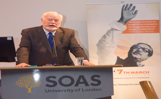 জাতির পিতা বঙ্গবন্ধু শেখ মুজিবুর রহমানের বর্ণাঢ্য রাজনৈতিক জীবন ঐতিহাসিক ৭ই মার্চের ভাষণের বিভিন্ন দিক নিয়ে গবেষণা মূলক বক্তব্য প্রদান করেন ইন্সটিটিউট অব কমনওয়েলথ স্টাডিজের প্রফেসর জেমস ম্যানর। প্রফেসর জেমস ম্যানরের গবেষণা মূলক বক্তব্য শুনতে সোয়াস বিশ্ববিদ্যালয়ে বিশ্বের বিভিন্ন দেশ থেকে বাঙ্গালী অবাঙ্গালী গবেষক, সাংবাদিকসহ বিভিন্ন শ্রেণী পেশার মানুষ অংশ নেন। এ অনুষ্ঠানে অংশ নেয়াদের অধিকাংশই তরুণ প্রজন্মের।