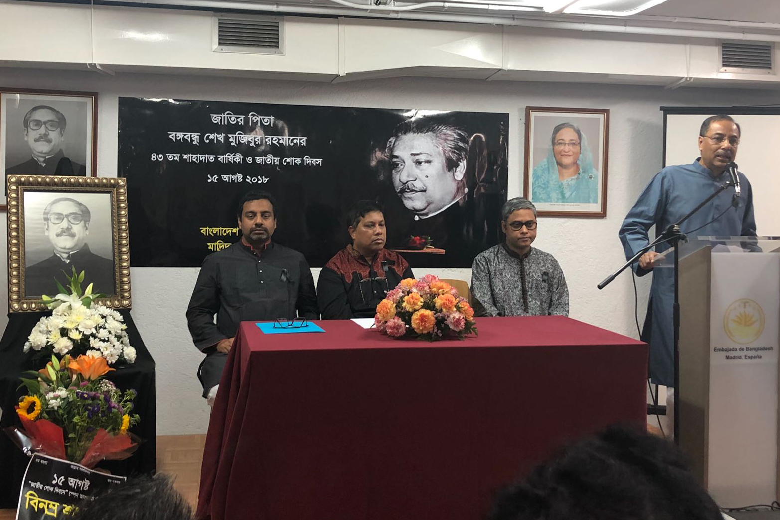 স্পেনে যথাযোগ্য মর্যাদায় জাতির জনক বঙ্গবন্ধু শেখ মুজিবুর রহমানের ৪৩ তম মৃত্যুবার্ষিকী ও জাতীয় শোক দিবস পালন করেছে বাংলাদেশ দূতাবাস।