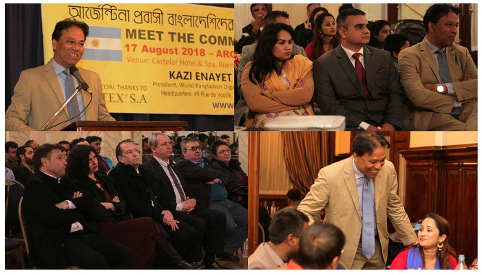 প্যারিস ভিত্তিক ‘বিশ্ব বাংলাদেশ সংস্থা’ তথা ওয়ার্ল্ড বাংলাদেশ অর্গানাইজেশনের (ডব্লিউবিও) উদ্যোগে ১৭ আগস্ট আর্জেন্টাইন রাজধানীতে অনুষ্ঠিত ‘মিট দ্য কমিউনিটি’ শীর্ষক এক মতবিনিময় সভায় বাংলাদেশ-আর্জেন্টিনা দ্বিপাক্ষিক সম্পর্কের নানান বিষয়াদি পর্যালোচনা করা হয়।