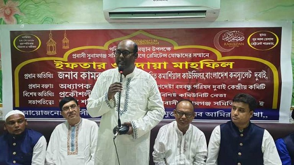 প্রবাসী সুনামগঞ্জ সমিতি সংযুক্ত আরব আমিরাত শাখার ইফতার ও দোয়া মাহফিলে প্রধান অতিথির বক্তব্যে বাংলাদেশ কনস্যুলেট জেনারেল দুবাইয়ের নবনিযুক্ত কমার্শিয়াল কাউন্সেলর কামরুল হাসান বলেছেন, প্রবাসীরা রেমিটেন্স যোদ্ধা। আর এসব রেমিটেন্স যোদ্ধারাই বাংলাদেশের সোনার মানুষ। এই সোনার মানুষেরাই আজ বাংলাদেশকে উন্নত বিশ্বে নিয়ে যেতে কাজ করে যাচ্ছেন।
