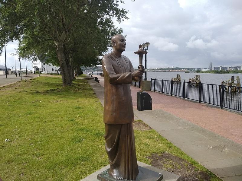 এমন একটা শহরে শান্তির ভাস্কর্য থাকা তো খুব স্বাভাবিক একটা ব্যাপার। কিন্তু সেই ভাস্কর্য যদি হয় বাংলাদেশের মাটিতে জন্ম নেওয়া কারও, তাহলে কিছুটা বিস্মিত হতেই হয়। হাতে মশাল, পরনে ধুতি-পাঞ্জাবিতে কার্ডিফের সমুদ্র পাড়ে দাঁড়িয়ে থাকা চিন্ময় কুমার ঘোষের জন্ম চট্টগ্রামের বোয়ালখালিতে। ১৯৬৪ সালে তিনি নিউইয়র্ক পাড়ি দিয়ে যোগধর্ম চর্চা শুরু করেন। দৌড়, সাঁতার, ভারোত্তোলনেও মন দেন তিনি। হিন্দু ধর্মের সংস্কারক হিসেবেও পরিচিতি আছে তার।