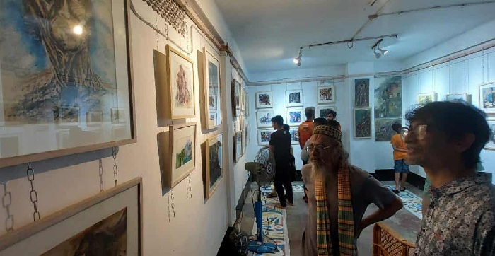 আমরা অনেকেই ধরে নিই, একটি প্রদর্শনী মানেই হবে নিখুঁতভাবে সাজানো গ্যালারি—শীতাতপ নিয়ন্ত্রিত পরিবেশ, হালকা সুরেলা সংগীত, নরম আলো এবং সুগন্ধে ভরা পরিপাটি আয়োজন। যেন স্বর্গীয় এক অভিজ্ঞতা। কিন্তু এখানে হলো একেবারে বিপরীত। নেই বড় কোনো বিলবোর্ড, নেই প্রচারণার আড়ম্বর। শিল্পী যেন ইচ্ছে করেই নিজেকে প্রচারের বাইরে রেখেছেন। বরং শিল্প এবং শিল্পীকে খুঁজে পেতে দর্শককে আসতে হয়েছে সুরমা নদী থেকে মাত্র এক মিনিট দূরের অর্ধ-পুরোনো এক মার্কেটের ছোট্ট ঘরে—যা আসলে শিল্পীর নিজস্ব স্টুডিও।