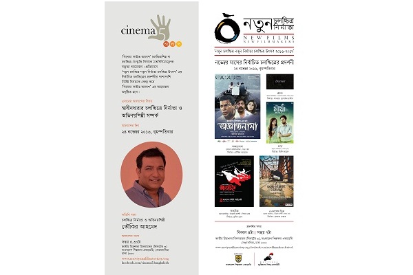 ‘সিনেমা ফাইভ আলাপ’ চলচ্চিত্র শিল্প বা চলচ্চিত্র-সংস্কৃতি বিষয়ক মতবিনিময়মূলক বক্তৃতা আয়োজন। প্রতিমাসে ‘নতুন চলচ্চিত্র নতুন নির্মাতা চলচ্চিত্র উৎসব’ এর নির্বাচিত চলচ্চিত্রের প্রদর্শনীর পাশাপাশি নির্দিষ্ট বিষয়কে কেন্দ্র করে ‘সিনেমা ফাইভ আলাপ’ এর আয়োজন অনুষ্ঠিত হবে। এবারের আলাপের বিষয় ‘স্বাধীনধারার চলচ্চিত্রে নির্মাতা ও অভিনয়শিল্পী সম্পর্ক’। এবারের অতিথি বক্তা চলচ্চিত্র নির্মাতা ও অভিনয়শিল্পী তৌকির আহমেদ।