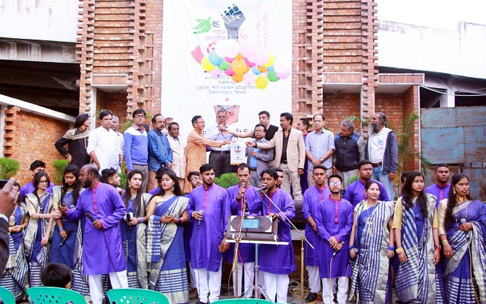 গণসংগীত যেমন নির্যাতিত নিপীড়িত মানুষের মুক্তির কথা বলে, তেমনই লোকসংগীত আমাদের ঐতিহ্য-চেতনার কথা বলে। এই সংগীত ছাড়া বাঙালির কোনও সংগ্রামই সফল হয়নি। তাই দুর্দিনে-দুর্যোগে গানই আমাদের শানিত মন্ত্র। গানে-সংগ্রামে ত্রিশবছর পূর্ণ করেছে অন্বেষা শিল্পীগোষ্ঠী। এ উপলক্ষে বুধবার (০৬ ফেব্রুয়ারি) বিকেলে নগরীর রিকাবীবাজারের কবি নজরুল অডিটোরিয়াম মুক্তমঞ্চে বেলুন উড়িয়ে অনুষ্ঠানের উদ্বোধন করেন বীর মুক্তিযোদ্ধা সদর উদ্দিন আহমদ চৌধুরী।