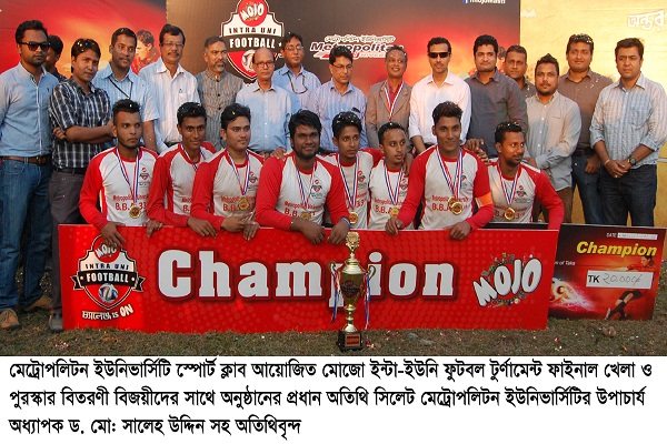 মেট্রোপলিটন ইউনিভার্সিটি স্পোর্ট ক্লাব আয়োজিত মোজো ইন্টা-ইউনি ফুটবল টুর্নামেন্ট ফাইনাল খেলা ও পুরস্কার বিতরণী অনুষ্ঠানে প্রধান অতিথির বক্তব্যে একথাগুলো বলেন। এমসি কলেজ ছাত্রাবাস মাঠে ফাইনাল ম্যাচে বিবিএ ২৯ কে ২/১ গোলে পরাজিত করে চ্যাম্পিয়ন হয় বিবিএ৩৩।
