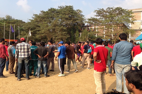 উত্তেজনাপূর্ণ এই ফাইনাল ম্যাচটি শুরু হয় বেলা ০২ টা ১০ মিনিটে। খেলা শুরুর ১৫ মিনিটের মাথায় প্রথম টাইম আউট নেয় জাবি দল। এ পর্যন্ত শাবি এবং জাবি দলের ফলাফল ছিল ০৫-০২। কিন্তু টাইম আউটের পর খেলতে নেমে জাবি দল স্লেজিংযের অভিযোগ এনে ওয়াক আউটের চেষ্টা করে। এ প্রসঙ্গে শাবি দলের খেলোয়াড়, আশিক জানান, ‘প্রথম টাইম আউটের সময়ই জাবি দল তাদের টিম ম্যানেজার আর কোচের সাথে কথা বলে ঠিক করে ফেলে যে তারা আর সিরিয়াসলি খেলবে না। কি কারণ, তা আমি জানি না। তারা যে স্লেজিংযের কারণ দেখিয়েছে এটা হাস্যকর। কারণ আন্তর্জাতিক ম্যাচগুলোতেও কম-বেশি স্লেজিং হয়। ম্যাচ রেফারি তাদের বারবার সতর্ক করে দেওয়া সত্ত্বেও তারা খেলার নামে কালক্ষেপণ করছিল। এটা মোটেও খেলোয়াড়সুলভ কোনো আচরণ ছিল না’। কিন্তু এর ঠিক পরপরই শাবি শিক্ষক রেজাউল আহমেদ শাওন ছুটে গিয়ে জাবির টিম ম্যানেজারের কলার চেপে ধরেন বলে প্রত্যক্ষদর্শীদের কেউ কেউ জানিয়েছে। পরে ম্যাচ রেফারি এবং টুর্নামেন্ট ম্যানেজমেন্টের হস্তক্ষেপে পরিস্থিতি স্বাভাবিক হয় এবং দুই দলই আবার খেলা শুরু করে।