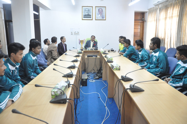 সাক্ষাত পরবর্তী চা চক্রে ভিসি ক্রীড়া ক্ষেত্রে নৈপুণ্য প্রদর্শন করে এ বিশ্ববিদ্যালয়ের অর্জিত সম্মান অক্ষুন্ন রাখার আহবান জানান। তিনি প্রত্যেক খেলোয়ারকে বিশ্ববিদ্যালয়ের পক্ষ থেকে ব্লেজার প্রদানের ঘোষণা দেন।