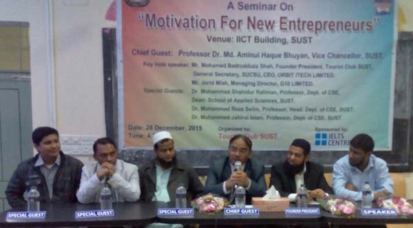 শাহজালাল বিজ্ঞান ও প্রযুক্তি বিশ্ববিদ্যালয়ের ভ্রমণ বিষয়ক একমাত্র সংগঠন সাস্ট টুরিস্ট ক্লাবের উদ্যোগে নতুন উদ্যোক্তাদের প্রেরণামূলক আলোচনা সভা অনুষ্ঠিত। সোমবার বিশ্ববিদ্যালয়ের এম. ওয়াজেদ আলী ভবনের সভাকক্ষে বিকাল সাড়ে চারটায় এই আলোচনা সভার আয়োজন করা হয়।