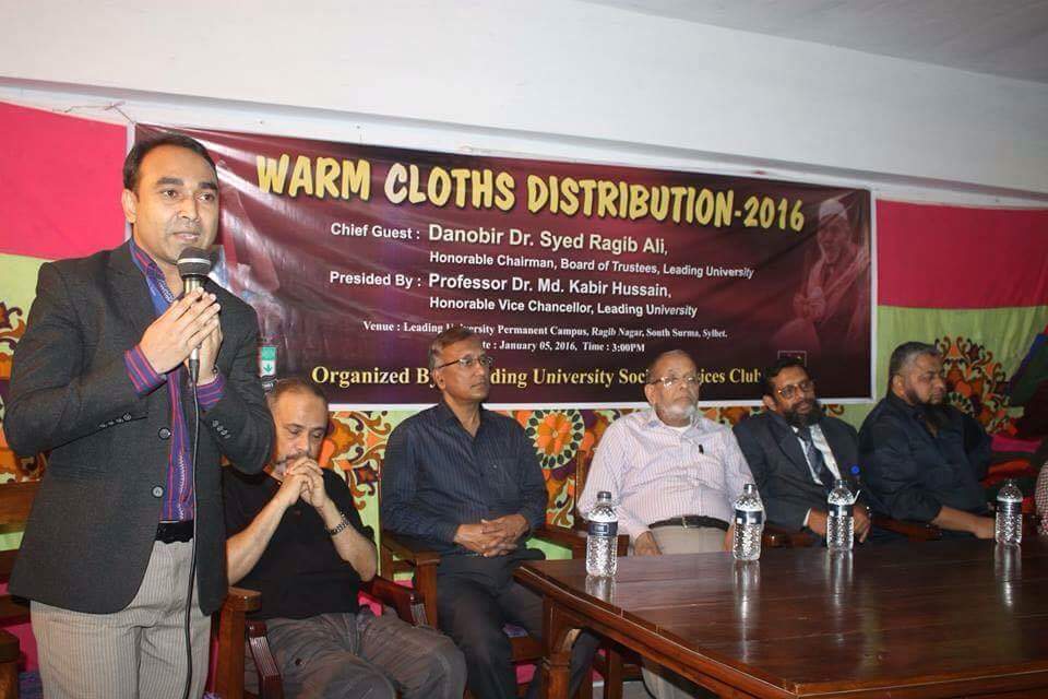 লিডিং ইউনিভার্সিটি সোশ্যাল সার্ভিসেস ক্লাবের উদ্যোগে শীতবস্ত্র বিতরণের ৩য় পর্ব কামালবাজারের রাগিব নগরে অবস্থিত লিডিং ইউনিভার্সিটি'র পার্মানেন্ট ক্যাম্পাসের আশাপাশে এলাকায় ৮৬০ পিস শীতবস্ত্র হত দরিদ্র মানুষের মধ্যে বিতরণ করা হয়।