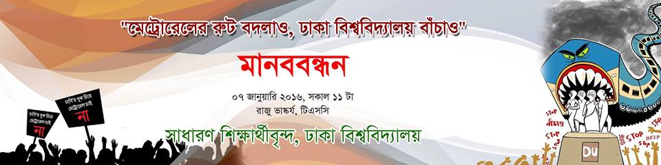 ঢাকা বিশ্ববিদ্যালয়ের সাধারণ শিক্ষার্থীরা প্রস্তাবিত মেট্রোরেল প্রকল্পের রুট পরিবর্তনের দাবিতে আন্দোলনের সিদ্ধান্ত নিয়েছে ঢাকা বিশ্ববিদ্যালয়ের শিক্ষার্থীরা।