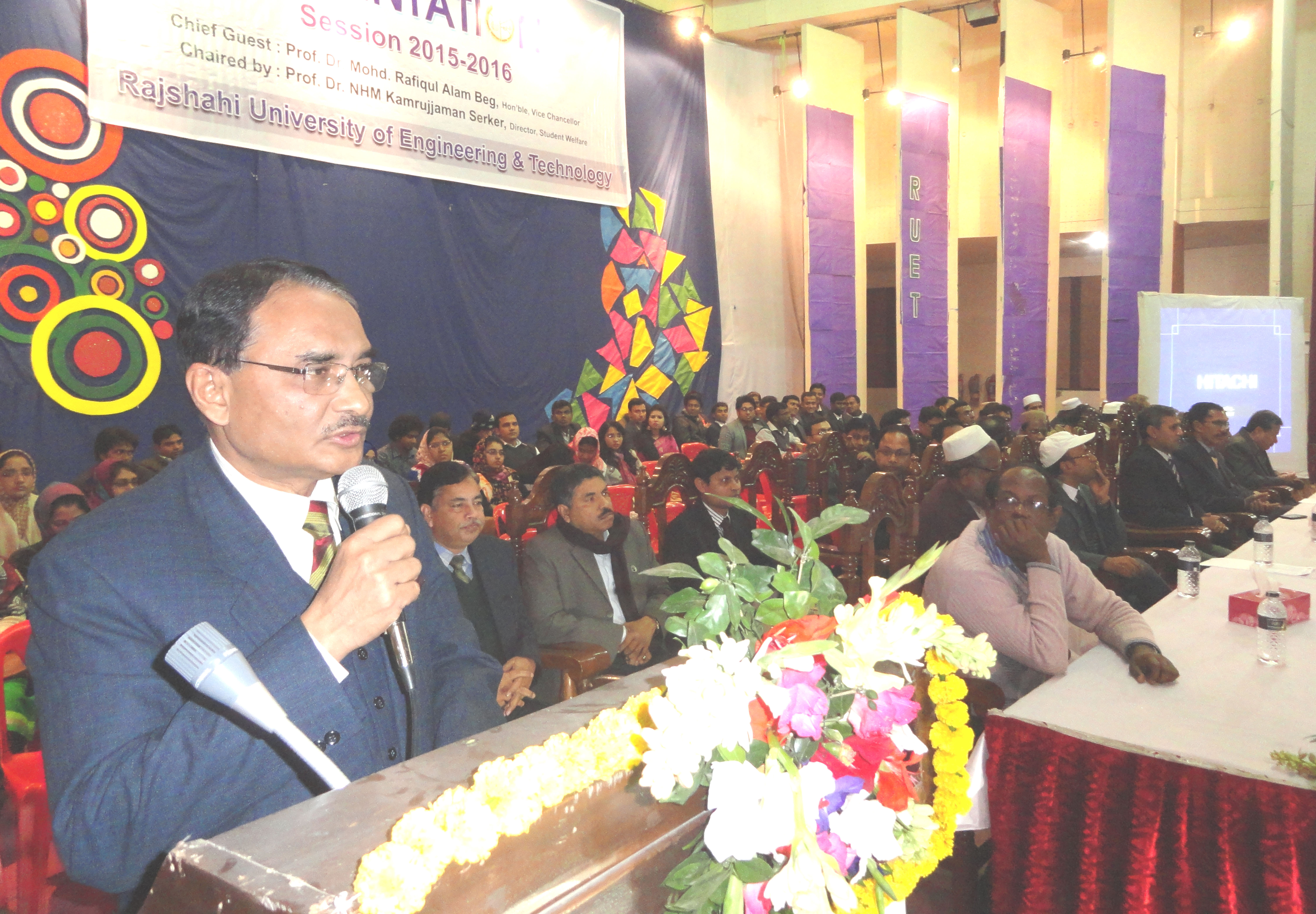 ছাত্রকল্যাণ পরিচালক প্রফেসর ড. এন. এইচ. এম কামরুজ্জামান সরকারের সভাপতিত্বে অনুষ্ঠিত ওরিয়েন্টেশন সভায় অন্যান্যদের মধ্যে বক্তব্য রাখেন যন্ত্রকৌশল অনুষদের ডীন ও শিক্ষক সমিতির সভাপতি প্রফেসর ড. নীরেন্দ্র নাথ মুস্তাফি, ভারপ্রাপ্ত রেজিষ্ট্রার প্রফেসর ড. মোঃ মোশাররাফ হোসেন ও কেন্দ্রীয় কম্পিউটার সেন্টারের ইনচার্জ প্রফেসর ড. মোঃ শহীদ উদ জামান। ওরিয়েন্টেশনে বিভিন্ন অনুষদের ডীন, বিভাগীয় প্রধান ও শিক্ষনগন উপস্থিত ছিলেন।