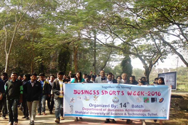 জমকালো আয়োজনে শাহজালাল বিজ্ঞান ও প্রযুক্তি বিশ্ববিদ্যালয়ের ব্যবসায় প্রশাসন বিভাগের সপ্তাহব্যপী ক্রীড়া প্রতিযোগীতা ‘স্পোর্টস উইক-২০১৬’ শুরু হয়েছে।