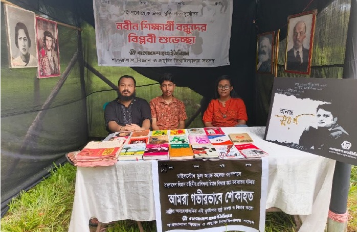 প্রশাসনের নিষেধাজ্ঞা উপেক্ষা করে বিশ্ববিদ্যালয় ক্যাম্পাসে টেন্ট বসিয়ে আইন অমান্য করেছে শাহজালাল বিজ্ঞান ও প্রযুক্তি বিশ্ববিদ্যালয় ছাত্র ইউনিয়ন।