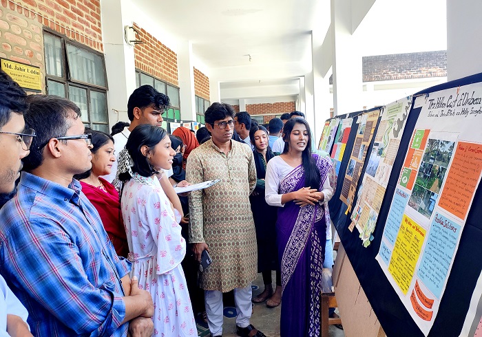 এবিষয়ে লোকপ্রশাসন বিভাগের প্রভাষক আব্দুল বাছিত সাদাফ বলেন, এই পোস্টার প্রদর্শনী আয়োজনের মূল উদ্দেশ্য ছিল শিক্ষার্থীদের বইয়ের সীমাবদ্ধতার বাইরে নিয়ে গিয়ে বাস্তব জীবনের অভিজ্ঞতার সঙ্গে ক্লাসের তত্ত্বকে মিলিয়ে শেখার সুযোগ দেওয়া। পরিবেশ, দুর্যোগ ও স্থায়ীত্বের মতো জটিল বিষয়গুলো নিয়ে কাজ করতে গিয়ে তারা মাঠে গিয়েছে, তথ্য সংগ্রহ করেছে এবং সমস্যার সমাধানে সৃজনশীল ধারণা উপস্থাপন করেছে। সেমিস্টারটি ছিল অত্যন্ত ব্যস্ত, তবুও শিক্ষার্থীরা যেভাবে নিষ্ঠা ও পরিশ্রমের মাধ্যমে কাজটি সম্পন্ন করেছে তা সত্যিই প্রশংসনীয়। প্রথমবারের মতো আয়োজিত এ পোস্টার প্রেজেন্টেশনে ৬০টি পোস্টার তত্ত্বাবধান করা হয়, যদিও কাজটি সহজ ছিলনা। কিন্তু শিক্ষার্থীদের উদ্যম ও প্রতিশ্রুতির কারণে এই প্রচেষ্টা সার্থক হয়েছে। আমি বিশ্বাস করি, এই উদ্যোগ শুধু তাদের জ্ঞান বাড়ায়নি, বরং ভবিষ্যতে বাস্তব জীবনের সমস্যা সমাধানে আত্মবিশ্বাসী হতে সহায়তা করবে।