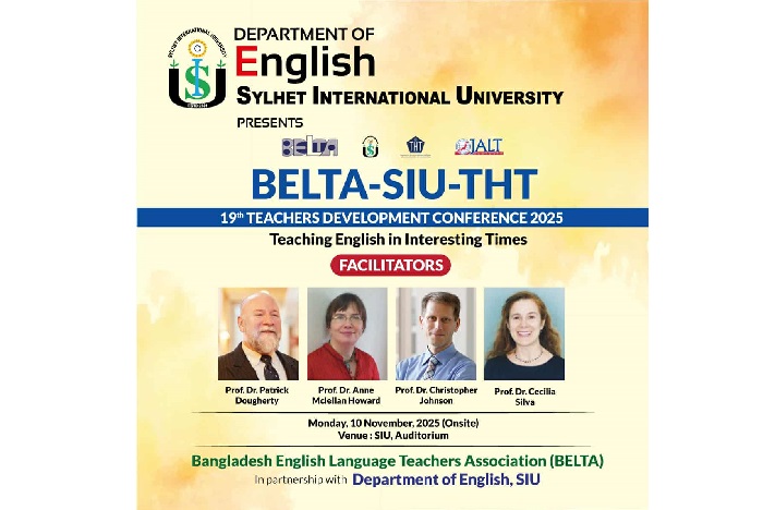 সিলেট বিভাগের ইংরেজি শিক্ষকদের পেশাগত দক্ষতা উন্নয়নের লক্ষ্যে বেলটা-এসআইইউ-টিএইচটি কনফারেন্স আগামীকাল ১০ নভেম্বর, সোমবার অনুষ্ঠিত হবে। এ কনফারেন্সে সহযোগী আয়োজক হিসেবে রয়েছে সিলেট ইন্টারন্যাশনাল ইউনিভার্সিটির ইংরেজি বিভাগ।