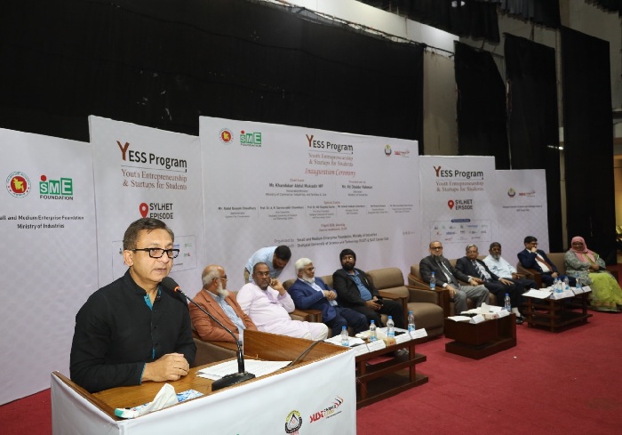 বিশেষ অতিথির বক্তব্যে সিলেট সিটি কর্পোরেশনের প্রশাসক আব্দুল কাইয়ুম চৌধুরী বলেন, বেকারত্ব দূরীকরণে এসএমই ফাউন্ডেশন যে ভূমিকা পালন করছে, তা নিঃসন্দেহে প্রশংসার দাবিদার। মাননীয় প্রধানমন্ত্রী ১ কোটি মানুষের কর্মসংস্থানের যে ঘোষণা দিয়েছেন, তা বাস্তবায়নে আমাদের মাননীয় মন্ত্রী মহোদয় বলিষ্ঠ ভূমিকা রাখছেন। আমরা জাতির সেই আশা-আকাঙ্ক্ষা বাস্তবায়নে ঐক্যবদ্ধভাবে কাজ করে যাব। শিক্ষার্থীদের যাতায়াত ও ক্যাম্পাসের অভ্যন্তরীণ যোগাযোগ ব্যবস্থা নির্বিঘ্ন করতে শীঘ্রই রাস্তাঘাটের কাজ শুরু করা হবে।