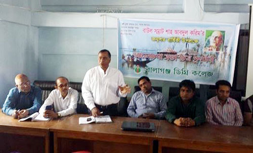 অধ্যাপক ফয়জুল ইসলামের সভাপতিত্বে ও শিক্ষার্থী প্রিয়াংকা চক্রবর্তীর উপস্থাপনায় আলোচনা সভায় বক্তারা বলেন, শাহ আব্দুল করিম সারা জীবন মানুষের জয় গান গেয়েছেন।