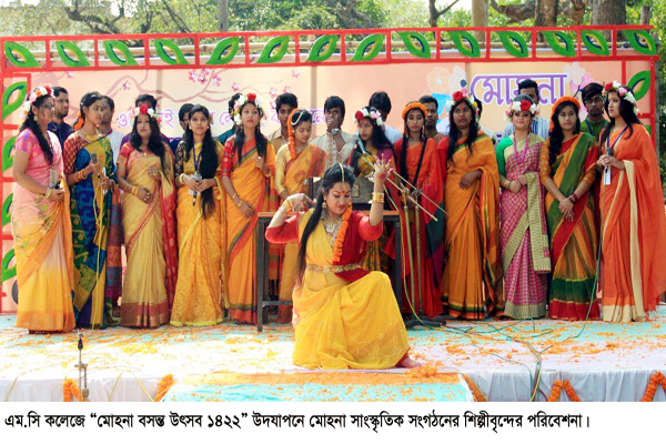 ঋতুরাজ বসন্তকে উদযাপন করল ঐতিহ্যবাহী এম.সি. শিক্ষার্থীরা। মোহনা সাংস্কৃতিক সংগঠনের আয়োজনে মোহনা বসন্ত উৎসব ১৪২২ হয়ে ওঠে হাজারও মানুষের মিলন মেলা।
