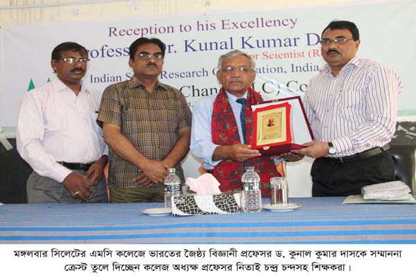ভারতের মহাকাশ গবেষনা কেন্দ্রের জৈষ্ঠ্য বিজ্ঞানী প্রফেসর ড. কুনাল কুমার দাসকে সংবর্ধনা প্রদান করা হয়েছে। মঙ্গলবার সকালে সিলেট এমসি কলেজে তাকে এই সংবর্ধনা প্রদান করা হয়।