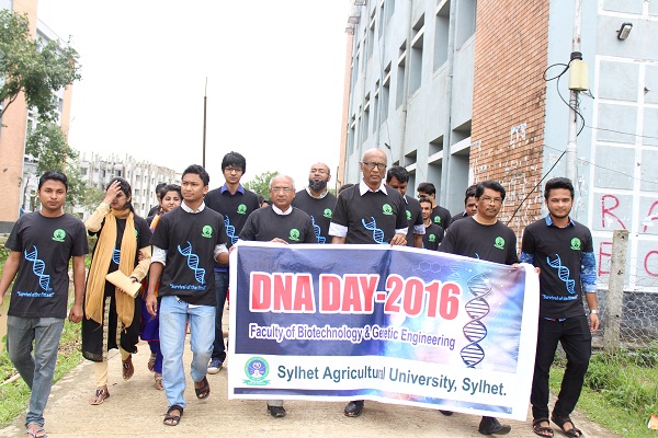 উল্লেখ্য ১৯৫৩ সালের ২৫ এপ্রিল জেমস ওয়াটসন, ফ্রান্সিস ক্রিক, মরিস উইলকিন্স, রোজালিন্ড ফ্রাঙ্কলিন এবং তাদের সহকর্মীরা বিশ্বখ্যাত সাময়িকী “নেচার”-এ ডিএনএ এর গঠন নিয়ে তাদের গবেষণাপত্রটি প্রকাশ করেন। ২০০৩ সালে সর্বপ্রথম যুক্তরাষ্ট্রে এদিবসটি পালন শুরু হয়। এর ধারাবাহিকতায় ২০১৬ সালে সিলেট কৃষি বিশ্ববিদ্যালয়ে ডিএনএ দিবস পালিত হলো। অনুষ্ঠান শেষে অনুষদের সামনে ডিএনএর প্রতীক সম্বলিত একটি কেক কেটে উপস্থিত সবাইকে মিষ্টিমুখ করিয়েছে সিকৃবির বায়োটেকনোলজি ও জেনেটিক ইঞ্জিনিয়ারিং অনুষদের শিক্ষার্থীবৃন্দ।