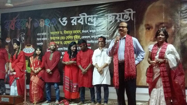 রবিবার (৮ মে) সকালে বিশ্ববিদ্যালয়ের (জবি) কেন্দ্রীয় মিলনায়তনে মঙ্গল প্রদীপ প্রজ্বলনের মাধ্যমে এ অনুষ্ঠানের উদ্বোধন করেন উপাচার্য ড. মীজানুর রহমান ও বাংলা বিভাগের চেয়ারম্যান অধ্যাপক ড. হোসনে আরা বেগম। অনুষ্ঠানে পর্যায়ক্রমে রবীন্দ্রনাথের কবিতা আবৃত্তি , সঙ্গীত পরিবেশিত হয়।