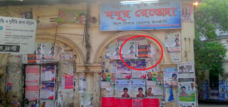 গ্রন্থাগার এলাকায় প্রহরীর দায়িত্বে থাকা ইকবাল জানান, ‘এখানে তো প্রতিদিন অনেকে পোস্টার লাগায়। এই পোস্টার কারা লাগিয়েছে খেয়াল করিনি।’