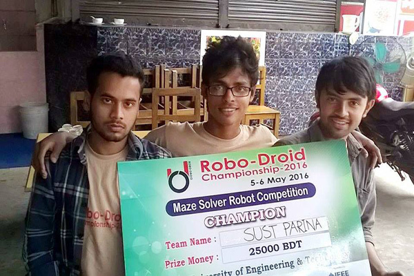 রাজশাহী বিশ্ববিদ্যালয়ে দুইদিনব্যাপি অনুষ্ঠিত রোবো-ড্রয়েড চ্যাম্পিয়নশিপ-২০১৬ আন্তঃবিশ্ববিদ্যালয় প্রতিযোগীতায় শাহজালাল বিজ্ঞান ও প্রযুক্তি বিশ্বিবিদ্যালয় এর রোবো সাস্ট বিজয়ী হয়েছে। গত শনিবার আইইইই রুয়েট এই প্রতিযোগীতা আয়োজন করে। প্রতিযোগীতায় রোবো সাস্টের হয়ে প্রতিযোগীতায় অংশগ্রহণ করেন ফাহিম ফয়সাল, ওমর ফারুক স্বপন, দেবলীনা ও মিনহাজ।