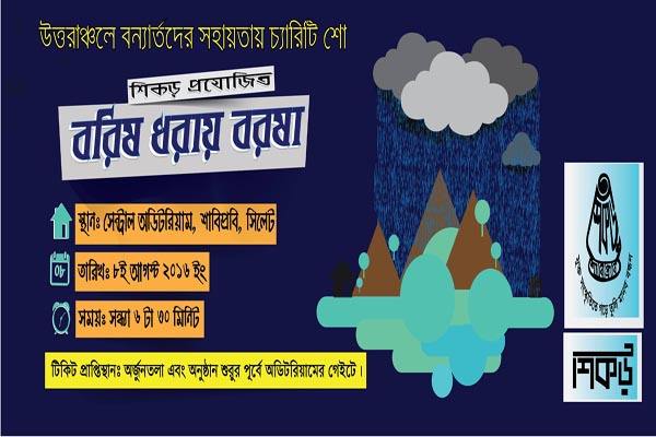 উত্তরাঞ্চলে প্রলয়ঙ্করী বন্যায় আক্রান্ত মানুষদের সহায়তায় শাহজালাল বিজ্ঞান ও প্রযুক্তি বিশ্ববিদ্যালয়ে চ্যারিটি শো’র আয়োজন করেছে নাট্য ও সংগীত বিষয়ক সংগঠন ‘শিকড়’।