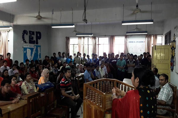 বিভাগীয় প্রধান অধ্যাপক ড. সালমা আক্তারের সভাপতিত্বে মতবিনিময় সভায় বক্তব্য রাখেন অধ্যাপক আখতারুল ইসলাম, সহযোগী অধ্যাপক সালাতুল ইসলাম মজুমদার, মহিবুল আলম, সহকারী অধ্যাপক ড. মোস্তাফিজুর রহমান এবং শিক্ষার্থীদের পক্ষে বক্তব্য রাখেন ফয়সাল পিয়াস, আশেকা আরেফা, ওয়াহিদ আল নুর, মাহবুবুর রহমান, ফাহাদ আসগর প্রমুখ। সভায় সঞ্চালনা করেন লোসানুর রহমান।