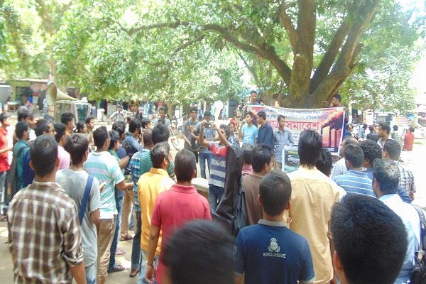 বুধবার (৩১ আগস্ট) দুপুরে রামপাল বিদ্যুৎ কেন্দ্র স্থাপন চুক্তি বাতিলের দাবিতে এবং জঙ্গিবাদের বিরুদ্ধে রাজশাহী বিশ্ববিদ্যালয়ে (রাবি) আয়োজিত ছাত্র সমাবেশে শাখা ছাত্র ফেডারেশনের সভাপতি কিংশুক কিঞ্জল এসব কথা বলেন। রাজশাহী বিশ্ববিদ্যালয় (রাবি) কেন্দ্রীয় সাংস্কৃতিক জোট কেন্দ্রীয় গ্রন্থাগারের পেছনে আম চত্বরে এ সমাবেশের আয়োজন করে।