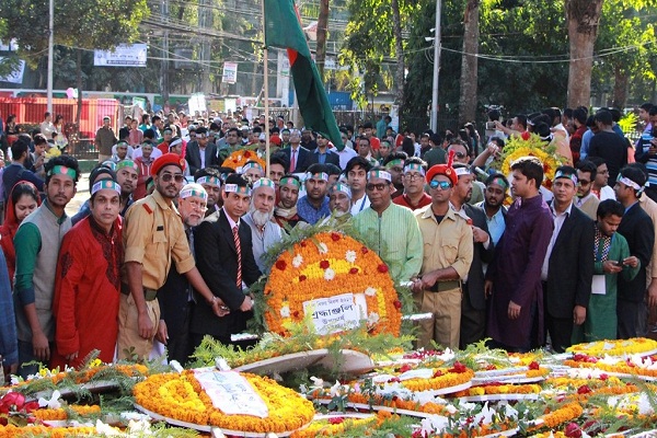 সকাল ১০টায় লিডিং ইউনিভার্সিটির ট্রাস্টি বোর্ডের ভারপ্রাপ্ত চেয়ারম্যান উপাচার্য এবং সকল বিভাগের পক্ষ থেকে সিলেটের কেন্দ্রিয় শহীদ মিনারে পুষ্পস্তবক অর্পণ করা হয়। পুনরায় র্যালিটি নগরীর প্রধান প্রধান সড়ক প্রদক্ষিণ করে রিকাবীবাজার পয়েন্ট এবং লামাবাজার পয়েন্ট হয়ে বিশ্ববিদ্যালয় প্রাঙ্গণে এসে শেষ হয়।