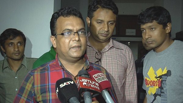 মঙ্গলবার রাতে বৈঠক শেষে সাংবাদিকদের সাথে কথা বলছেন মহান মুক্তিযুদ্ধের চেতনায় উদ্ধুব্ধ শিক্ষক পরিষদের যুগ্ন আহ্বায়ক মোস্তাবুর রহমান
