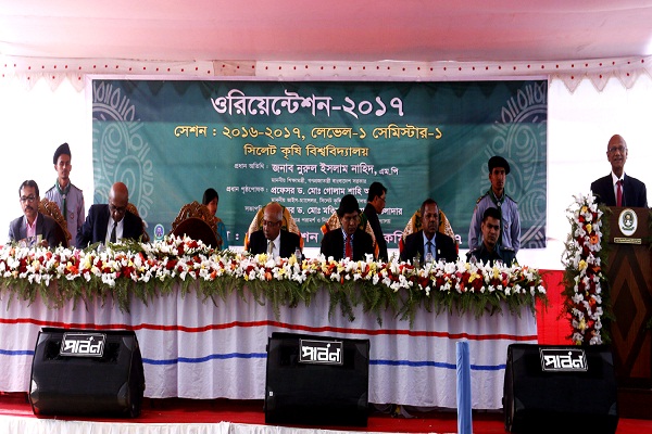 ওরিয়েন্টেশন বাস্তবায়ন কমিটির আহবায়ক ও ছাত্র পরামর্শ ও নির্দেশনা দপ্তরের পরিচালক প্রফেসর ড. মো. মতিয়ার রহমান হাওলাদারের সভাপতিত্বে অনুষ্ঠানে বিশেষ অতিথির বক্তব্য রাখেন সিকৃবির রেজিস্ট্রার মো. বদরুল ইসলাম শোয়েব, সিলেটের জেলা প্রশাসক জয়নাল আবেদিন, ডিন কাউন্সিলের আহবায়ক প্রফেসর ড. এ এফ এম সাইফুল ইসলাম, প্রভোস্ট কাউন্সিলের আহবায়ক প্রফেসর ড. নূর হোসেন মিঞা, এসএমপির উপ-কমিশনার বাসুদেব বণিক।
