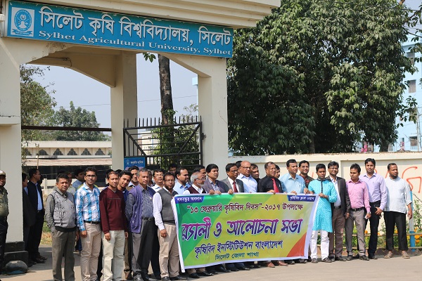 ১৩ ফেব্রুয়ারি (সোমবার) সকাল ১১টার দিকে একটি শোভাযাত্রা বিশ্ববিদ্যালয়ের পুরনো ভেটেরিনারি ভবন থেকে শুরু হয়ে বিশ্ববিদ্যালয়ের প্রধান প্রধান সড়ক প্রদক্ষিণ করে বঙ্গবন্ধু শেখ মুজিবুর রহমান হলে এসে শেষ হয়। বঙ্গবন্ধু হলে স্থাপিত জাতির জনক বঙ্গবন্ধু শেখ মুজিবুর রহমানের প্রতিকৃতিতে ফুল দিয়ে শ্রদ্ধা জানায় সিলেটের কৃষিবিদরা।