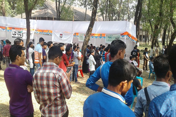 এমসি কলেজে প্রথমবারের মতো আয়োজিত তিন দিনব্যাপী বইমেলার দ্বিতীয় দিনে বইপ্রেমীদের পদচারণায় মুখরিত হয়ে উঠেছে।