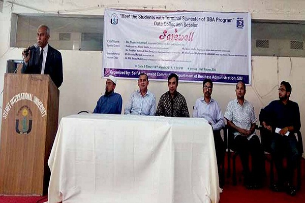 সিলেট ইন্টারন্যাশনাল ইউনিভার্সিটির বিবিএ-২৪তম ব্যাচের শিক্ষার্থীদেরকে বিশ্ববিদ্যালয়ের হল রুমে এক বিদায় সংবর্ধনা প্রদান করা হয়েছে।