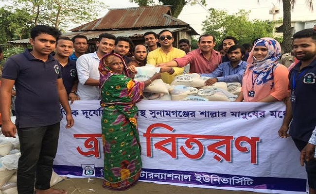 হাওরে অকাল বন্যায় ক্ষতিগ্রস্ত মানুষের মাঝে ত্রাণ বিতরণ করেছে সিলেট ইন্টারন্যাশনাল ইউনিভার্সিটি (এসআইইউ)।