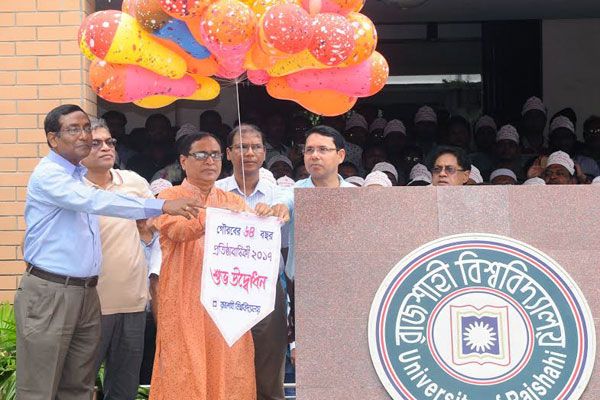 সকাল সাড়ে ১০টায় বিশ্ববিদ্যালয়ের প্রশাসন ভবনের সামনে থেকে বিশ্ববিদ্যালয় প্রশাসনের ঊর্ধ্বতন কর্মকর্তা, শিক্ষক-শিক্ষার্থী ও কর্মচারীদের অংশগ্রহণে এক বর্ণাঢ্য শোভাযাত্রা বের করা হয়। এতে বিশ্ববিদ্যালয়ে বিভিন্ন বিভাগ, ইন্সটিটিউট, আবাসিক হলসমূহ আলাদা আলাদা ব্যানার নিয়ে অংশগ্রহণ করে।