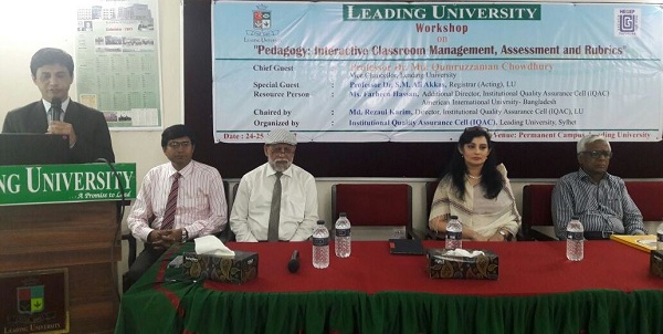 সিলেটের প্রথম বেসরকারী বিশ্ববিদ্যালয় লিডিং ইউনিভার্সিটির ইনিস্টিটিউশনাল কোয়ালিটি এ্যাসিউরেন্স সেল (আই.কিউ.এ.সি.) এর উদ্যোগে পেডাগুজি: ইন্টারেক্টিভ ক্লাশরুম ম্যানেজম্যান্ট, এ্যসেসমেন্ট রুব্রিক্স” শীর্ষক দুইদিন ব্যাপি এক কর্মশালা শুরু হয়েছে।
