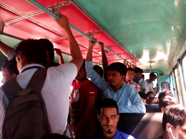 স্নাতক প্রথম বর্ষ পরীক্ষার্থী আজহার উদ্দিন বলেন, 'চার ঘন্টার পরীক্ষার পর সবাই ক্লান্ত। বাস এসেছে একটি, দাঁড়াবার জায়গাটুকও নেই। গাদাগাদিতে বমিও করেছে কয়েকজন।'