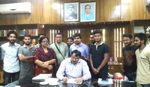 মঙ্গলবার (১৪নভেম্বর) ক্যাম্পাসে ডিবেটিং সোসাইটির কার্যক্রম শুরুর অনুমতিপত্রে স্বাক্ষর করেন এমসি কলেজ অধ্যক্ষ প্রফেসর নিতাই চন্দ্র চন্দ।